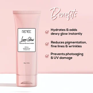 RENEE Pore Minimizing Sunscreen, your go-to solution for daily sun protection against harmful UVA and UVB rays. Formulated with innovative Hymagic 4D technology, enriched with 5% Hyaluronic acid and 2% Niacinamide, it forms a hydrating barrier. This fast-absorbing sunscreen helps to reduce the appearance of pores, fine lines, wrinkles, spots and blemishes. RENEE Pore Minimizing Sunscreen gets quickly absorbed and doesn’t feel oily or sticky, it hydrates the skin instantly and keeps it soft and supple. Use it daily to provide your skin with ultimate sun-protection every day!